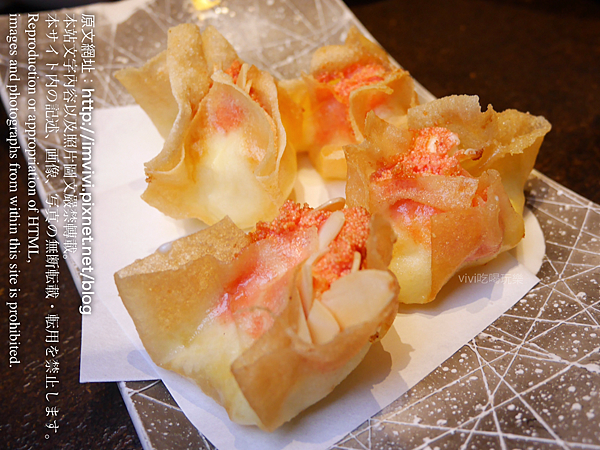 這道應該算是創意料理吧,外面是炸的脆脆的餛飩皮之類的,